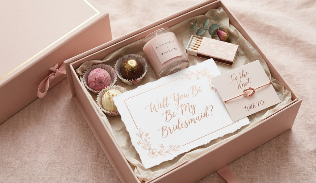 | Proposal box | Curated “Will You Be My Bridesmaid?” box | $25 – $60 |