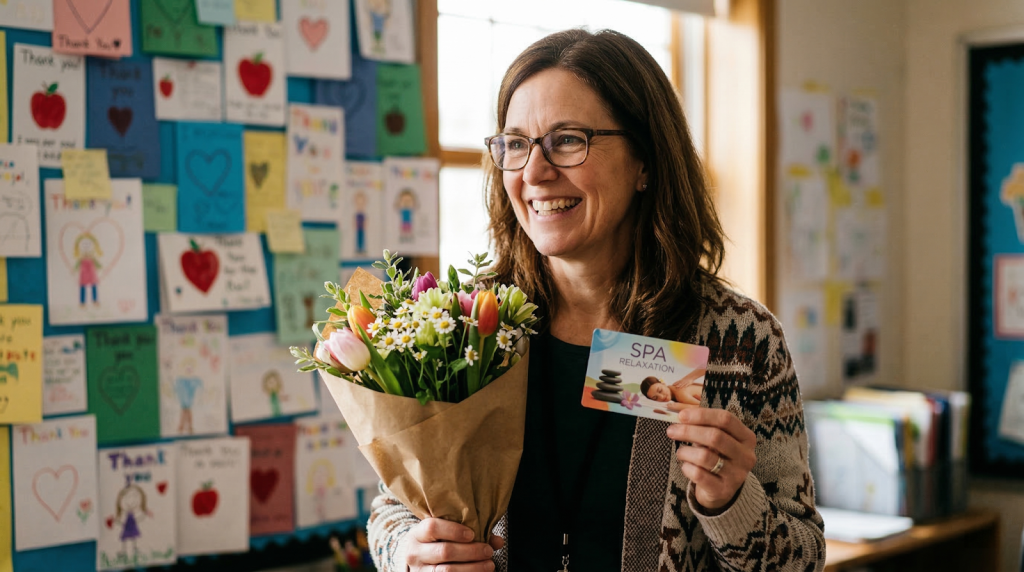 According to teachers themselves, the most appreciated gifts are gift cards (coffee shops, restaurants, bookstores), heartfelt handwritten notes, self-care items and classroom supplies. Avoid generic mugs and candles unless you know their personal taste.