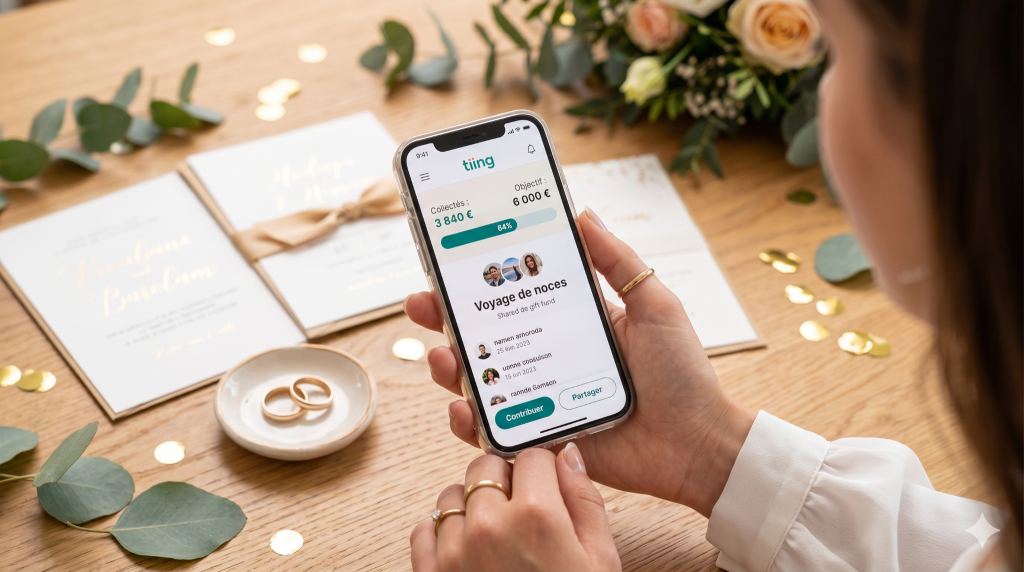 L’astuce du cadeau commun change la donne. Au lieu que 15 invités achètent chacun un petit cadeau utile à 50 $, une cagnotte Tiing de 750 $ permet d’offrir leur voyage de noces, un meuble signature ou une séance photo post-mariage. Un seul cadeau, mais marquant.