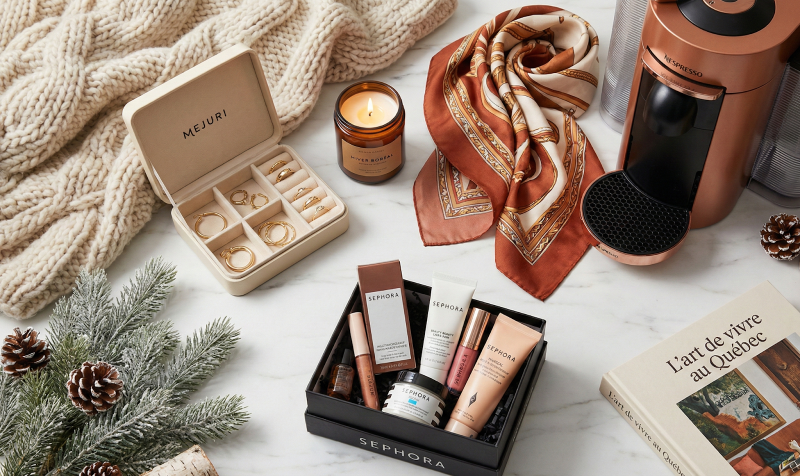 - Sephora skincare set – A curated gift box with bestselling products ($50-$120 CAD). Always a crowd-pleaser.