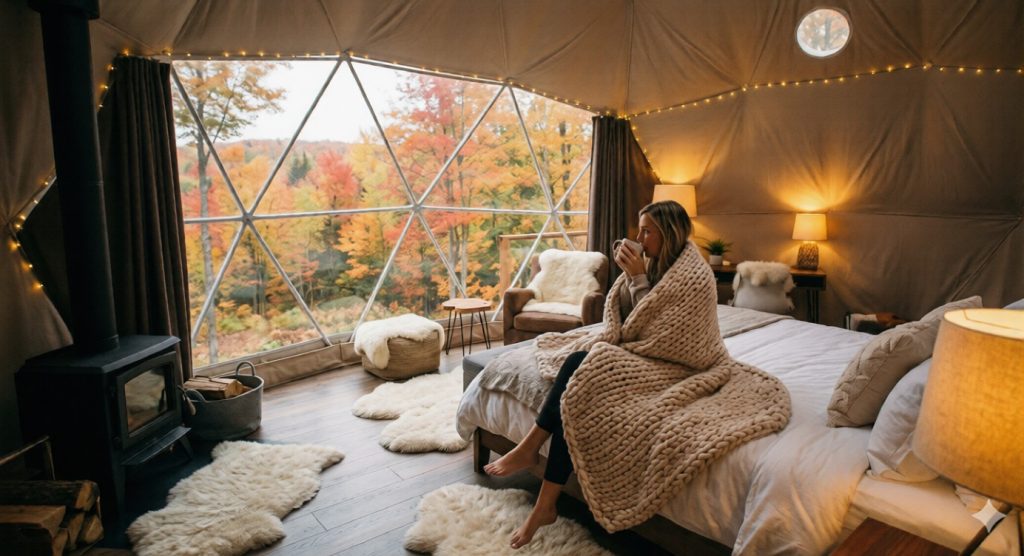 Dômes géodésiques, chalets spa ou refuges design dans les Laurentides ou Charlevoix. Le camping luxueux qui allie confort moderne et nature sauvage. La déconnexion parfaite.