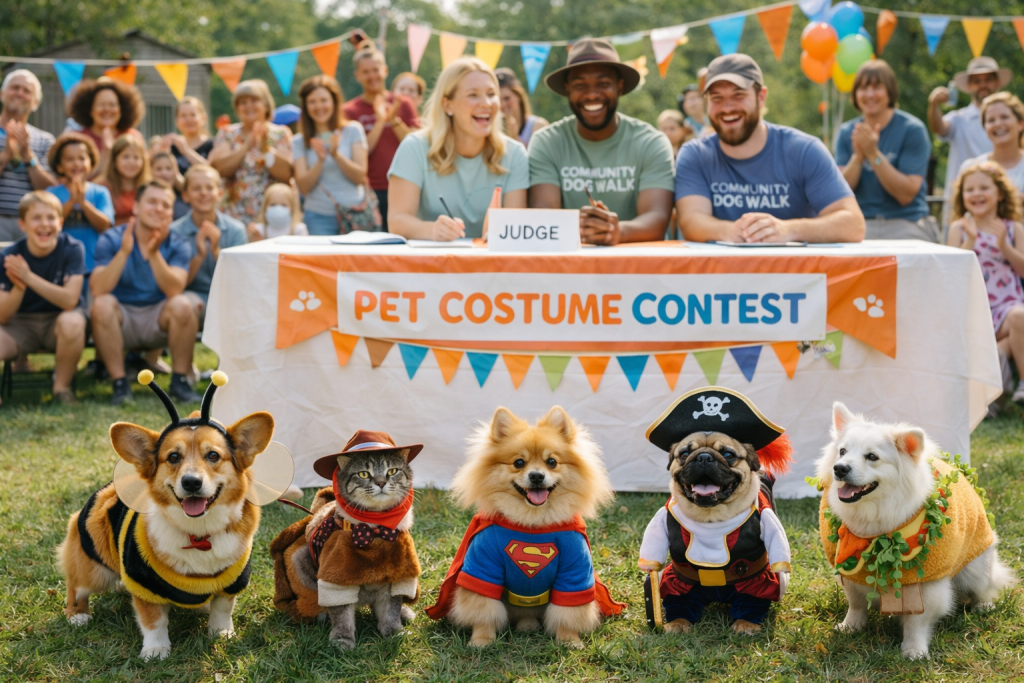 Rendez l’événement spécial avec des catégories : meilleur costume, chien le plus âgé, plus petit animal, meilleur tour. Remettez des prix donnés par des entreprises locales pour maintenir les coûts bas tout en augmentant l’enthousiasme.
