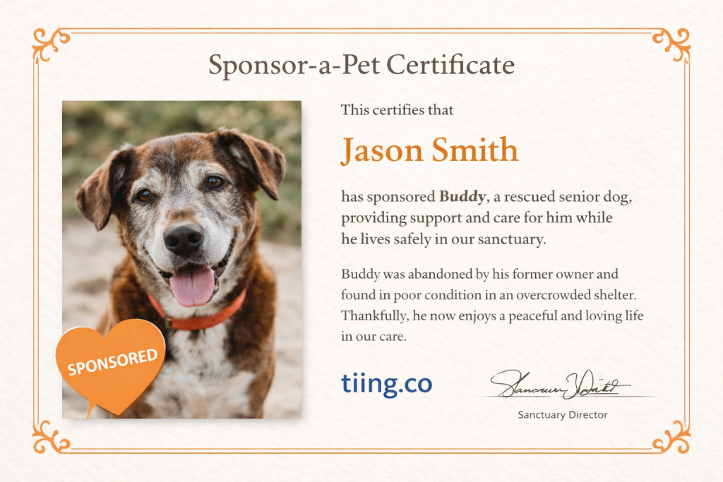 Cela fonctionne particulièrement bien pour les animaux qui ne seront peut-être jamais adoptés en raison de leur âge, de problèmes de santé ou de leur tempérament. Les parrains deviennent des défenseurs émotionnellement investis qui diffusent votre mission de façon organique.
